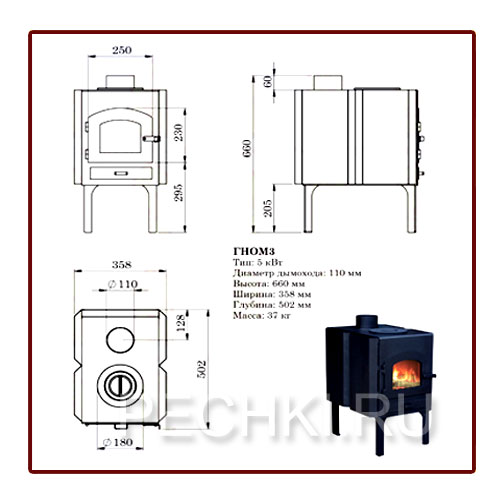 "Мал - да, удал!" - безусловно это выражение применимо к данной серии отопительных печей. Всем знакомая, горячая и любимая буржуйка. До сих пор многие консерваторы и скептики считают отопительные печи от МЕТА, типа буржуйка, самыми лучшими. А большенство садовых домов отапливаются именно такими печами. И действительно! ГНОМ не занимает много места, чрезвычайно прост в обслуживании, а при всем при этом дает 5 (!) кВт мощного обогрева, справляющегося с холодом в доме до 60-70 м, что ставит печь ГНОМ на одну ступень с небольшими чугунными печами. Особенно приятно отметить, цены на печи ГНОМ при этом по карману любому. Отопительная печь ГНОМ 2 не только согреет, но и даст возможность приготовить, подогреть, поддерживать температуру. Благодаря близкому расположению съемномного варочного чугунного